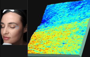 Visualize the skin's surface in three dimensions from any angle, rendered in natural skin tone, color relief, or gray scale.